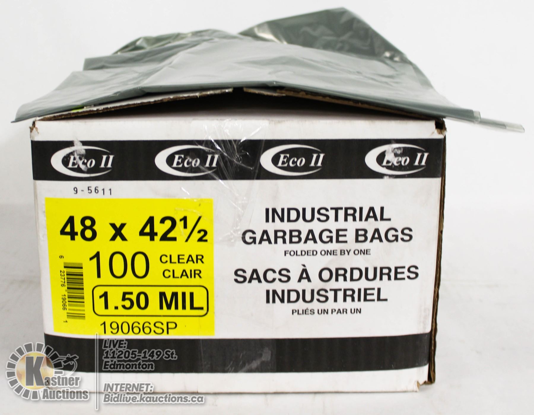 CASE OF 100 CLEAR 48X42.5 GARBAGE BAGS