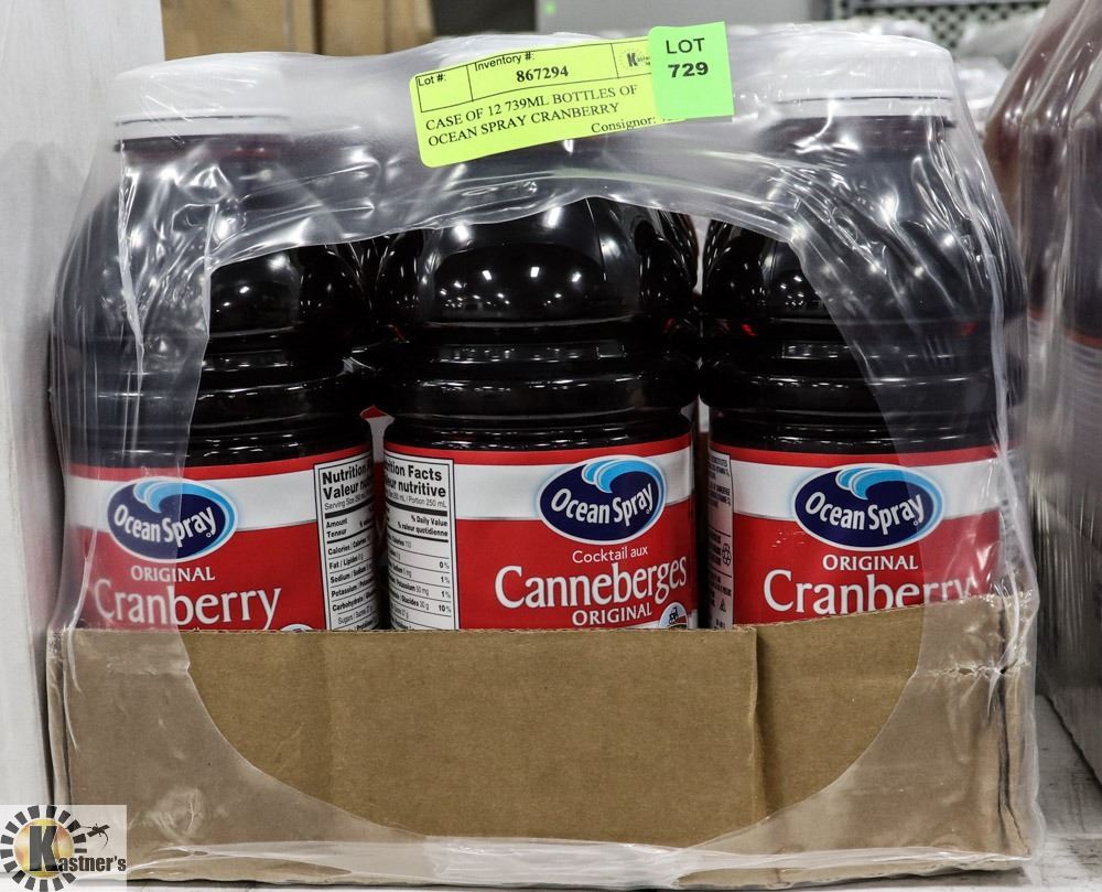 CASE OF 12 739ML BOTTLES OF OCEAN SPRAY CRANBERRY