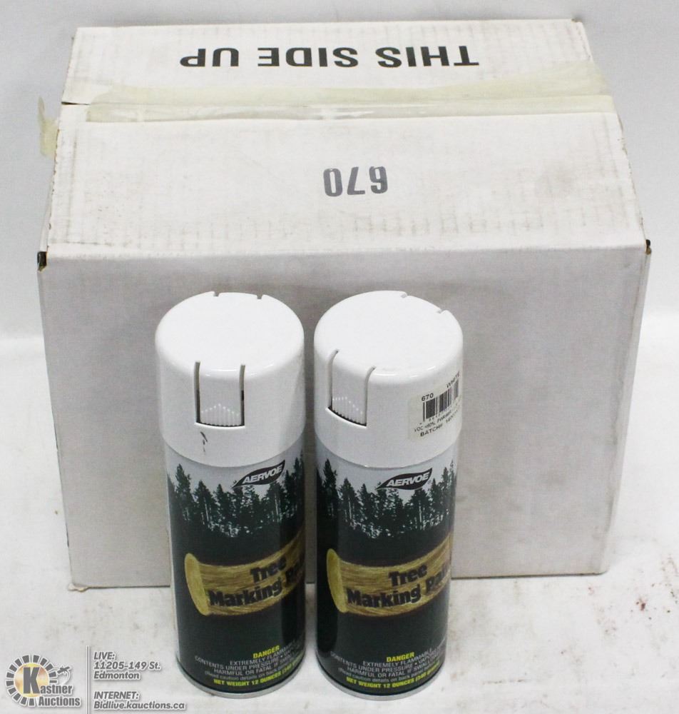CASE OF 12 CANS OF WHITE TREE MARKING PAINT.