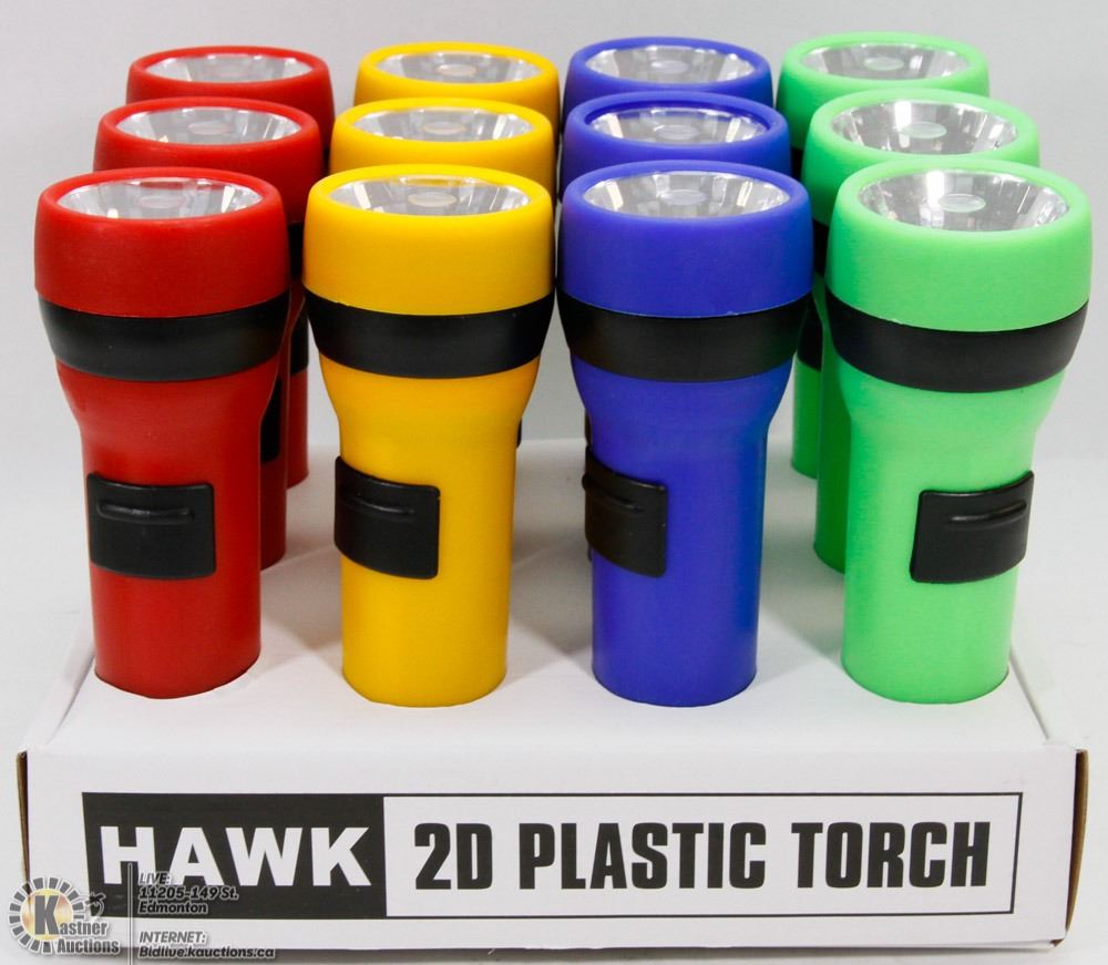 CASE OF 12 HAWK 2D PLASTIC TORCH / FLASHLIGHT
