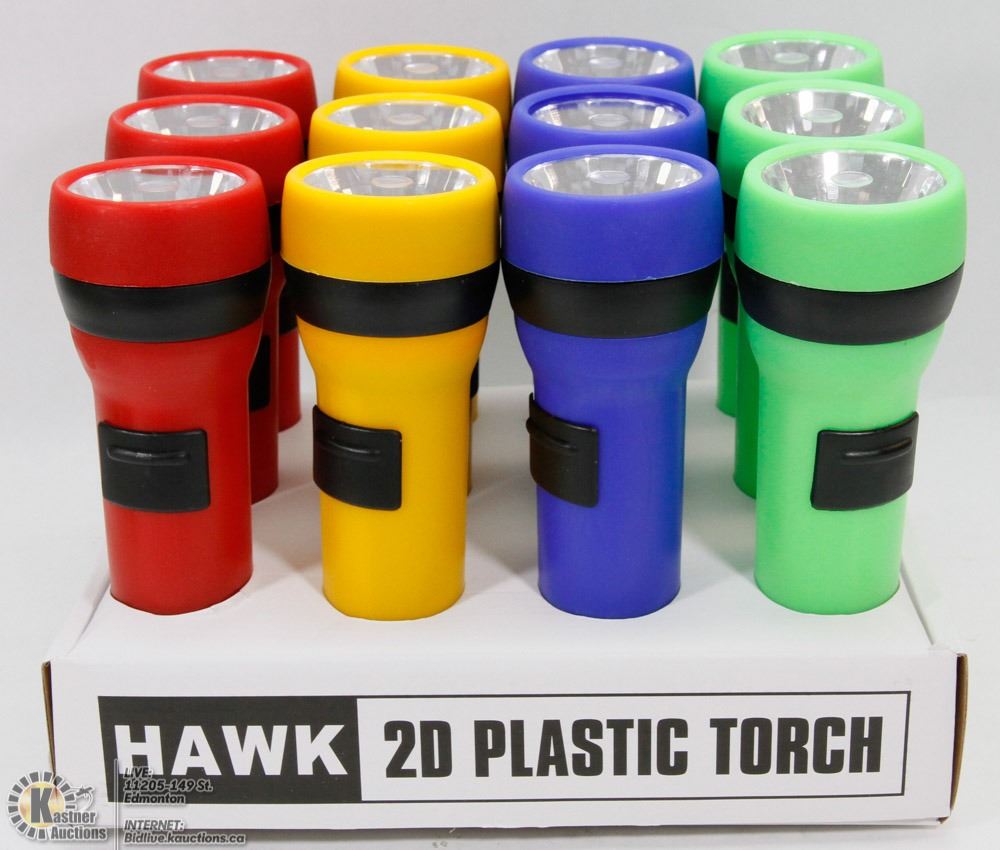 CASE OF 12 HAWK 2D PLASTIC TORCH / FLASHLIGHT