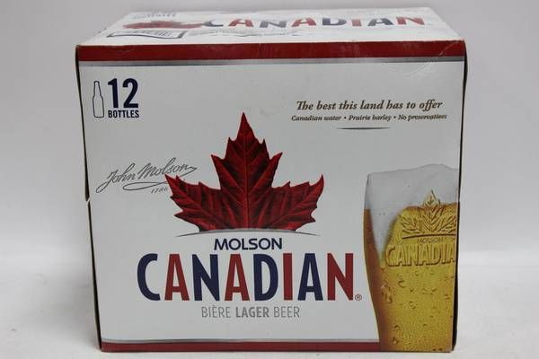 CASE OF 12 MOLSON CANADIAN BEER BOTTLES