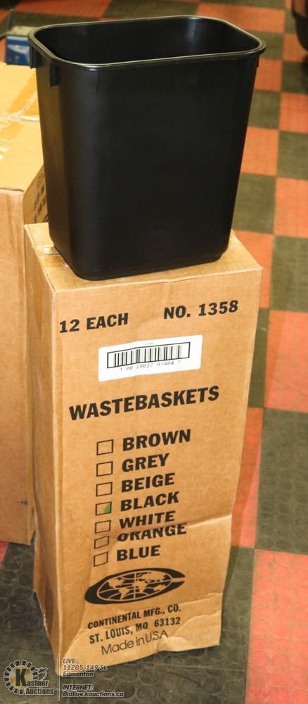 CASE OF 12 NEW BLACK WASTEBASKETS