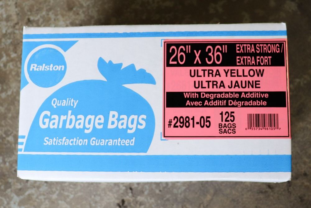 CASE OF 125- 26"X36" YELLOW GARBAGE BAGS
