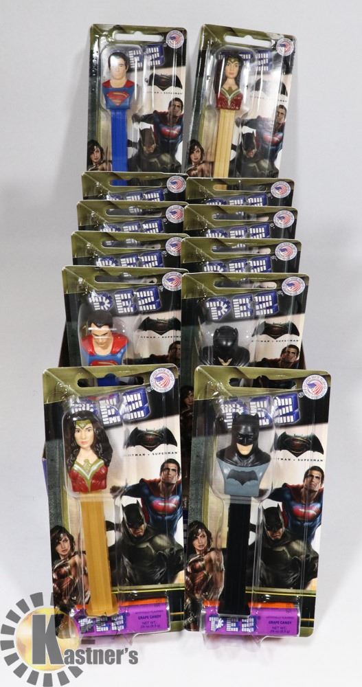 CASE OF 12MY BATMAN/SUPERMAN PEZ DISPENSERS W/PEZ