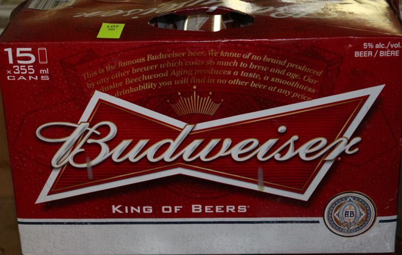 CASE OF 15 CANS BUDWEISER BEER 5% ALC/VOL