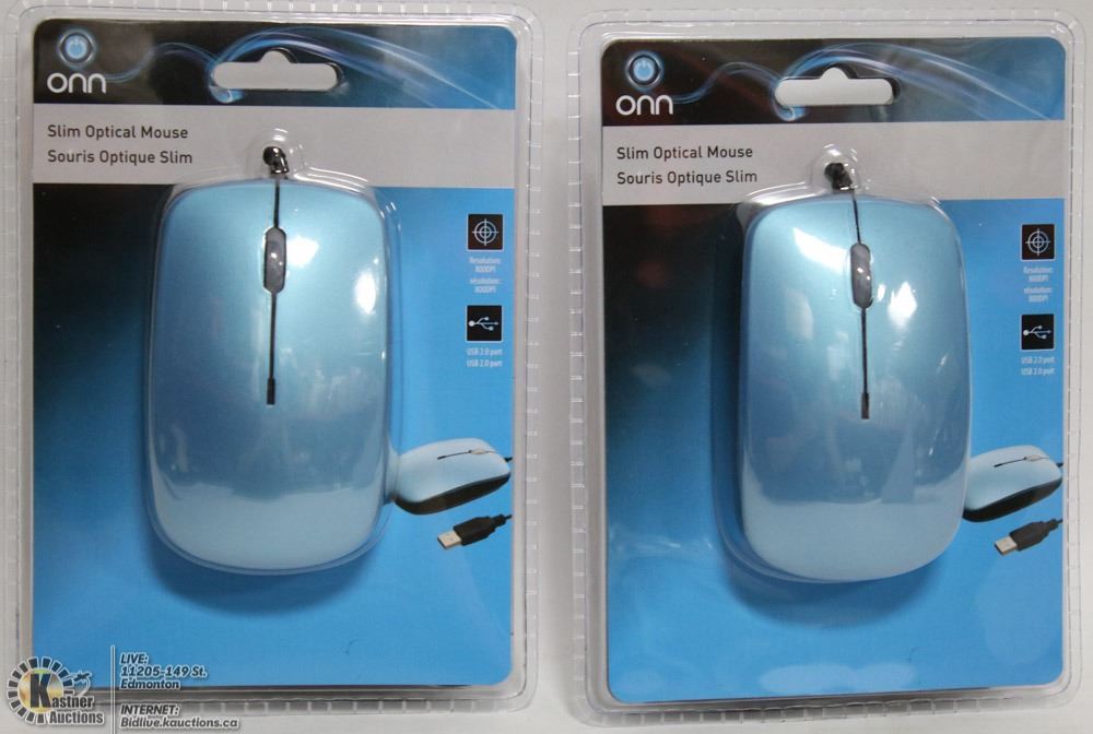 CASE OF 2 NEW BLUE ONN SLIM OPTICAL MICE