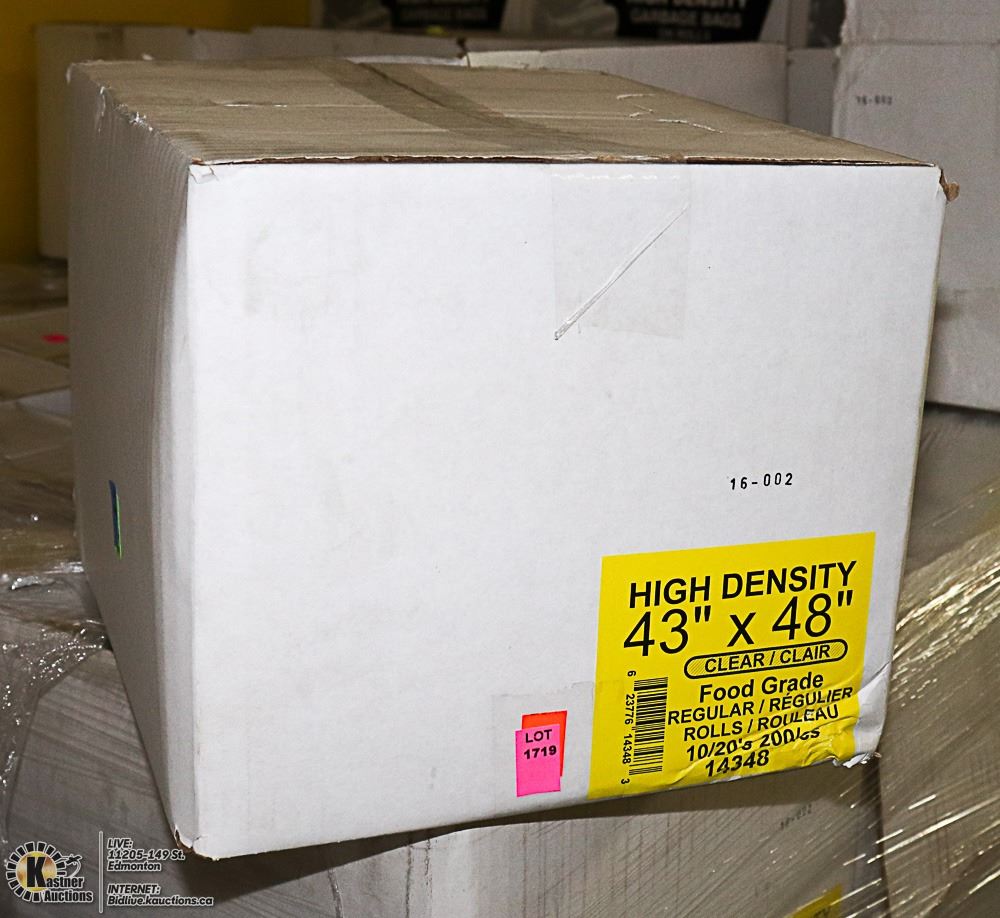 CASE OF 200 43"X48" CLEAR FOOD GRADE GARBAGE BAGS