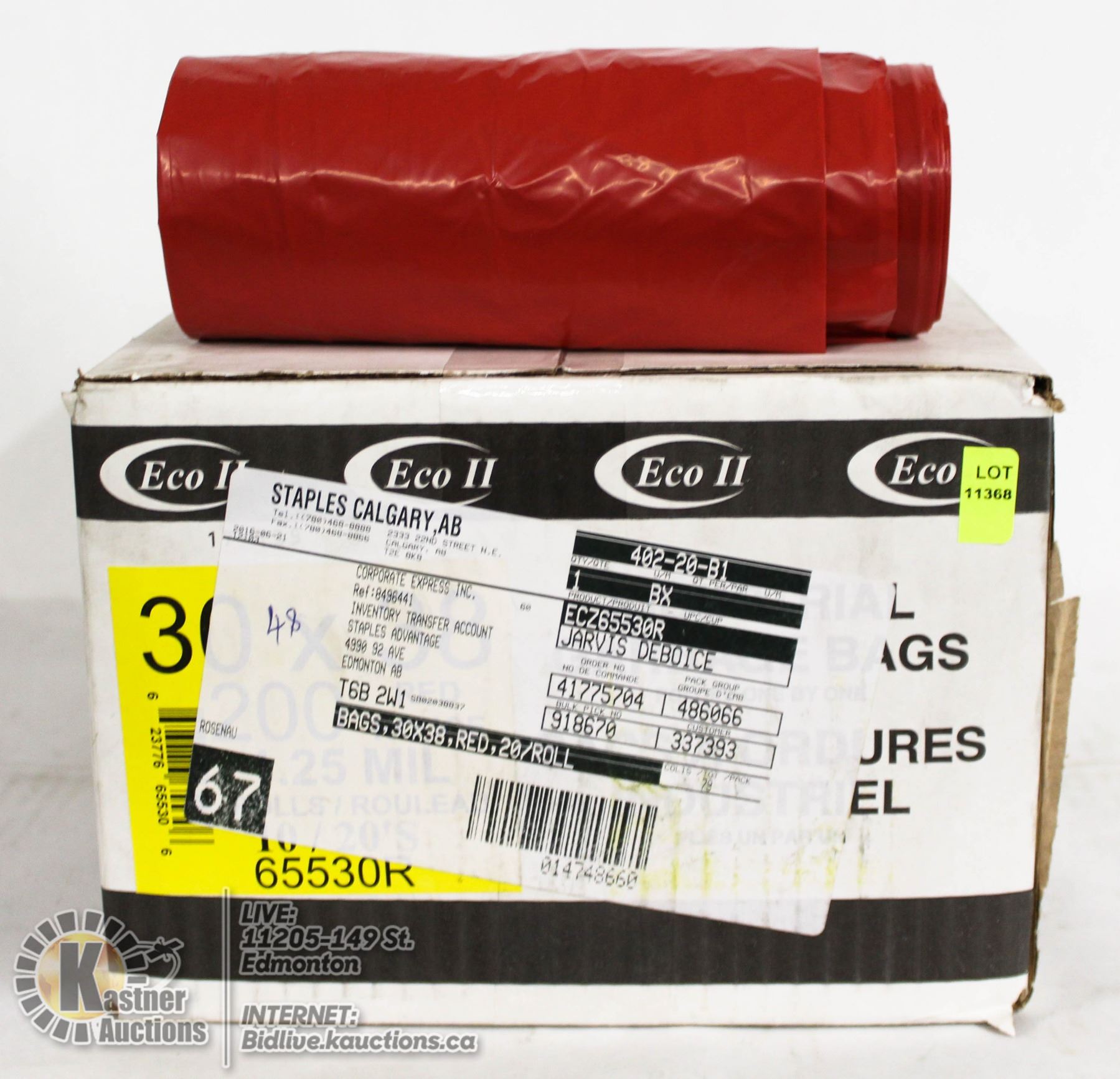 CASE OF 200 RED 30X38 GARBAGE BAGS