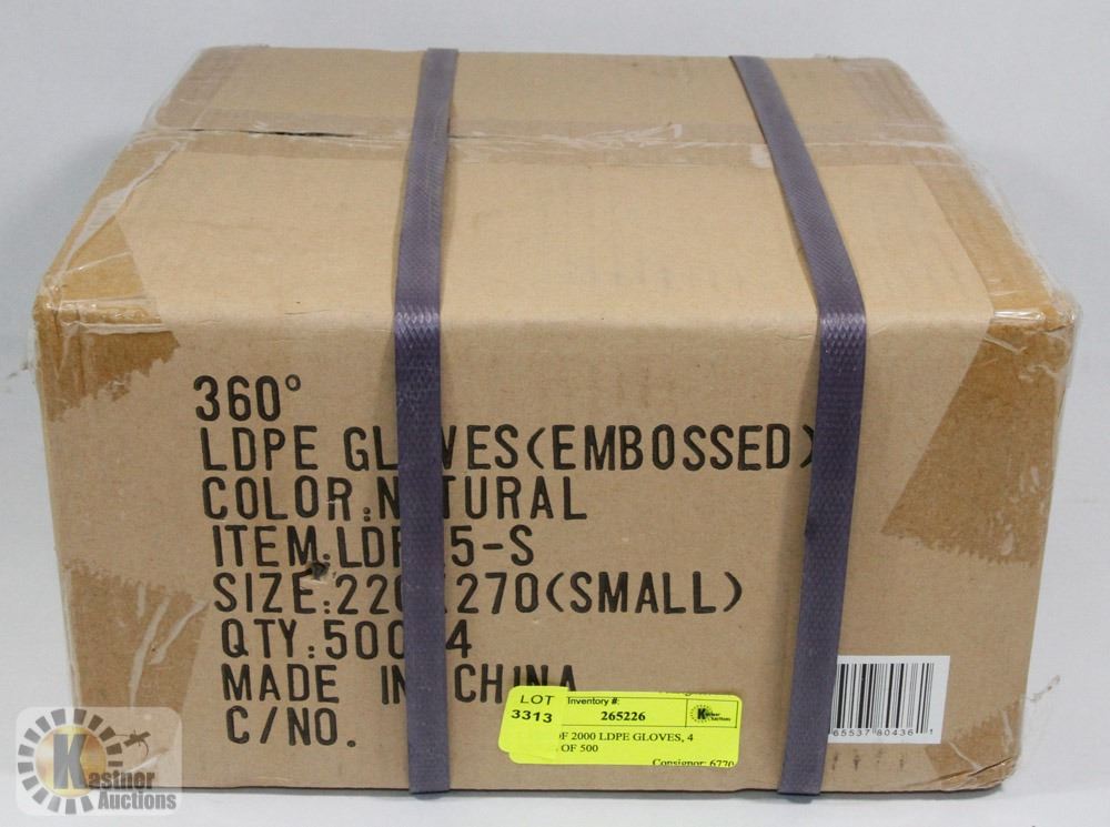 CASE OF 2000 LDPE GLOVES, 4 BOXES OF 500