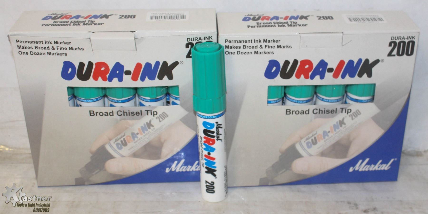 CASE OF 24 DURAINK BROAD TIP CHISEL MARKERS -GREEN