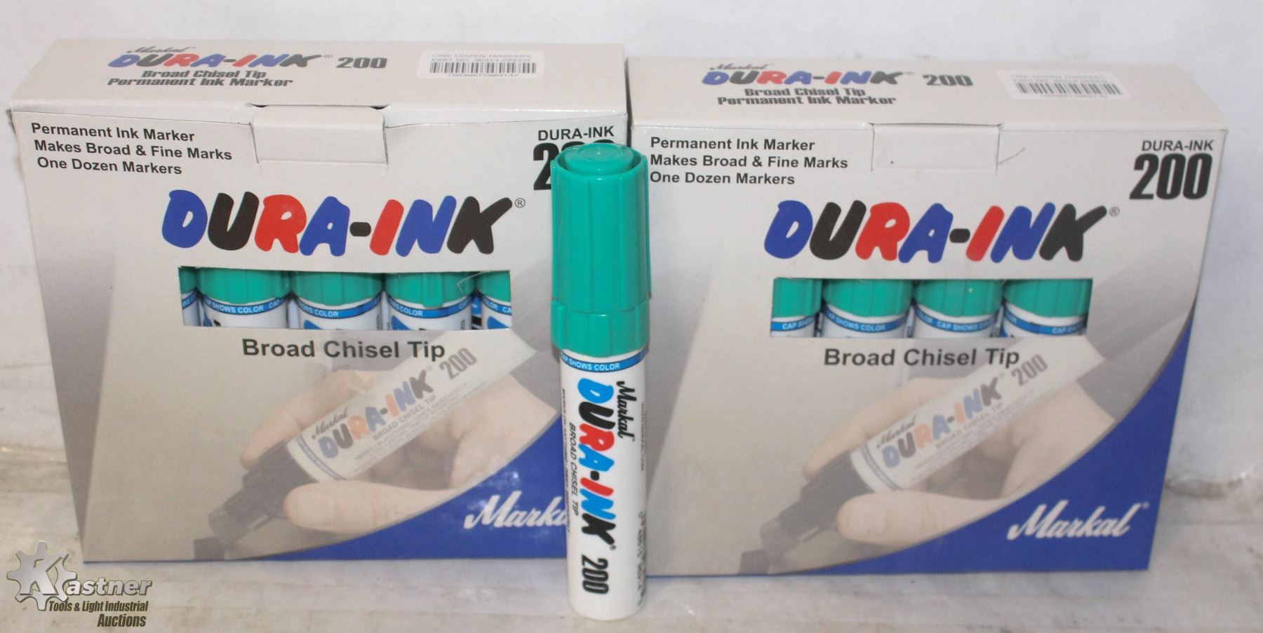 CASE OF 24 DURAINK BROAD TIP CHISEL MARKERS -GREEN