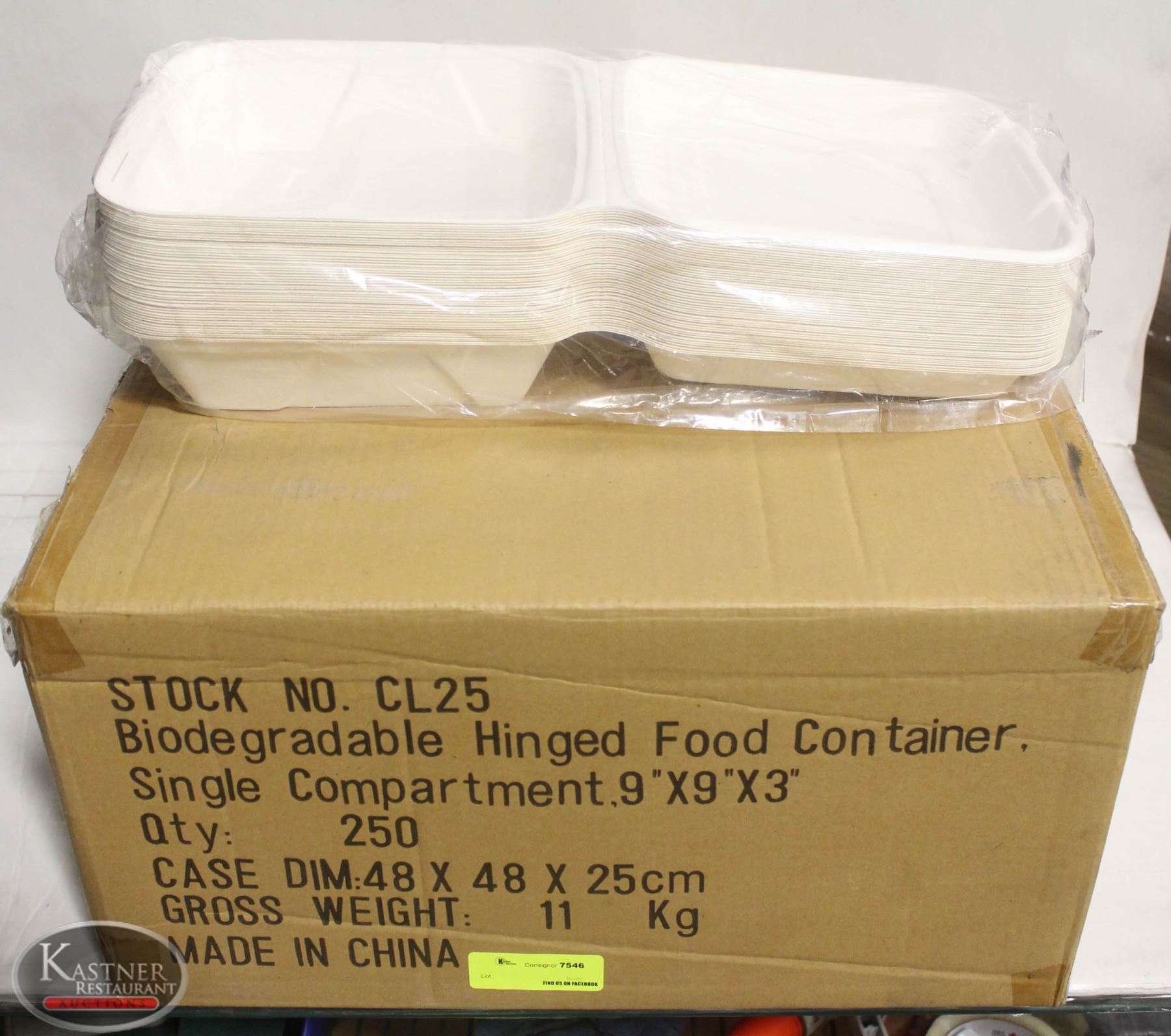 CASE OF 250 BIODEGRADABLE HINGED FOOD TAKEOUT