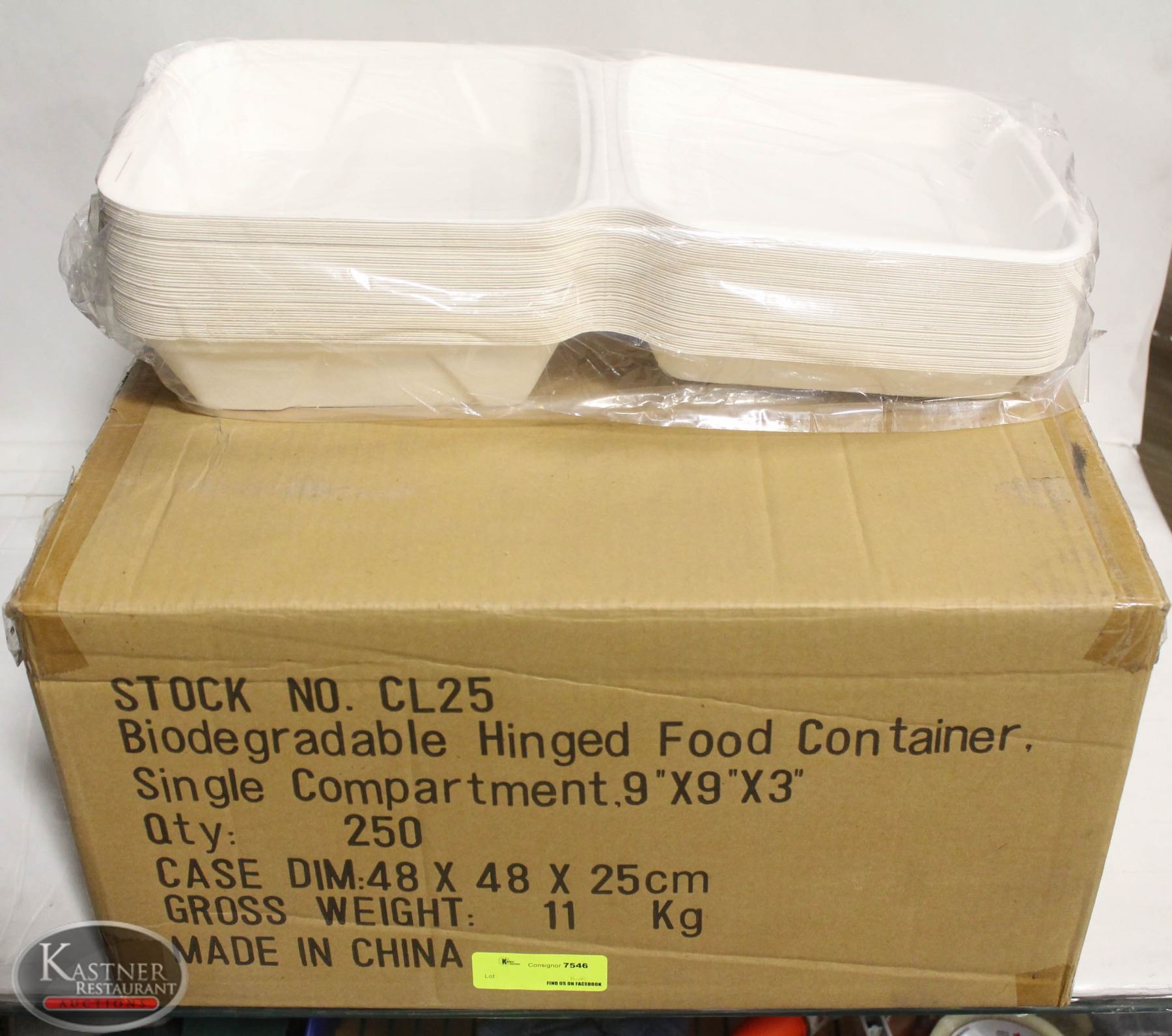 CASE OF 250 BIODEGRADABLE HINGED FOOD TAKEOUT