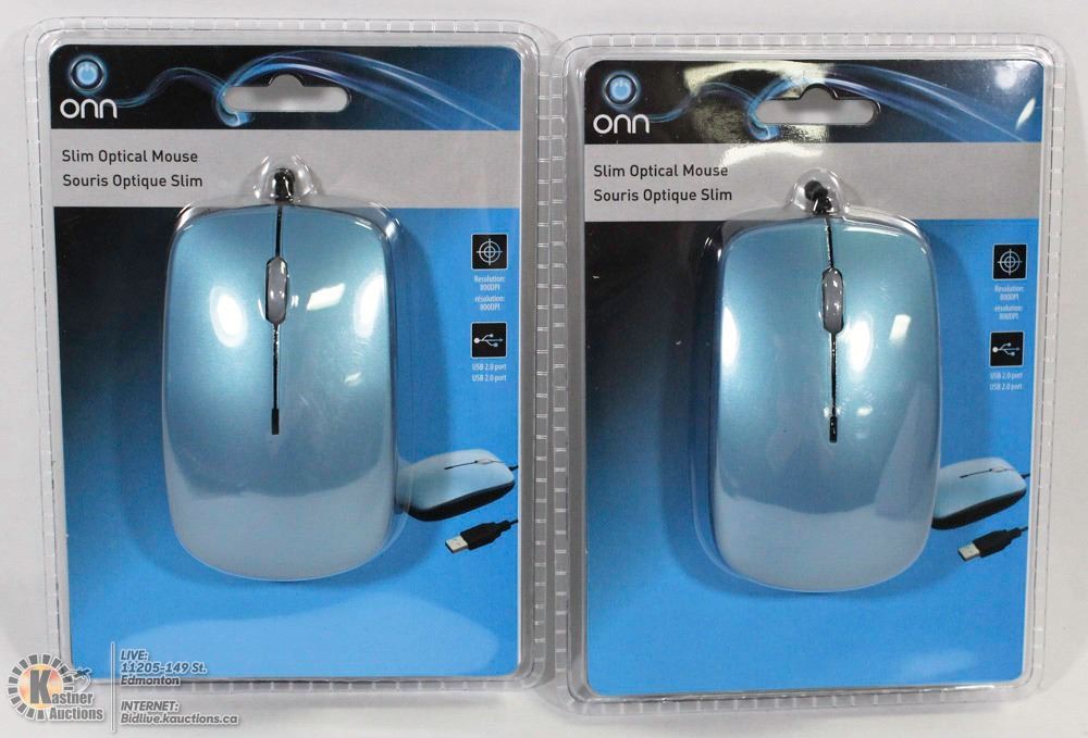 CASE OF 2PCS NEW ONN SLIM OPTICAL MOUSES