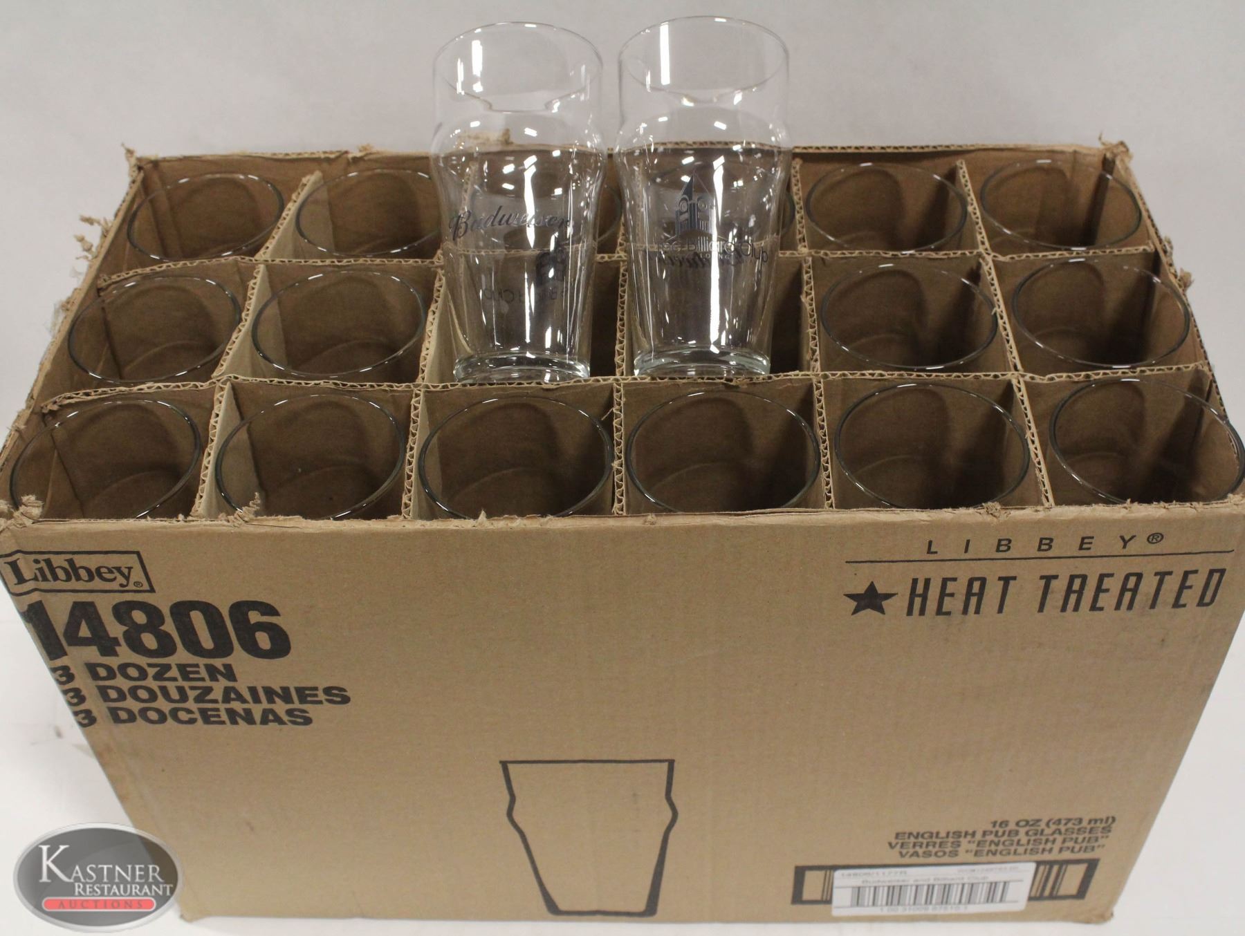 CASE OF 36 16OZ BUDWEISER GLASSES