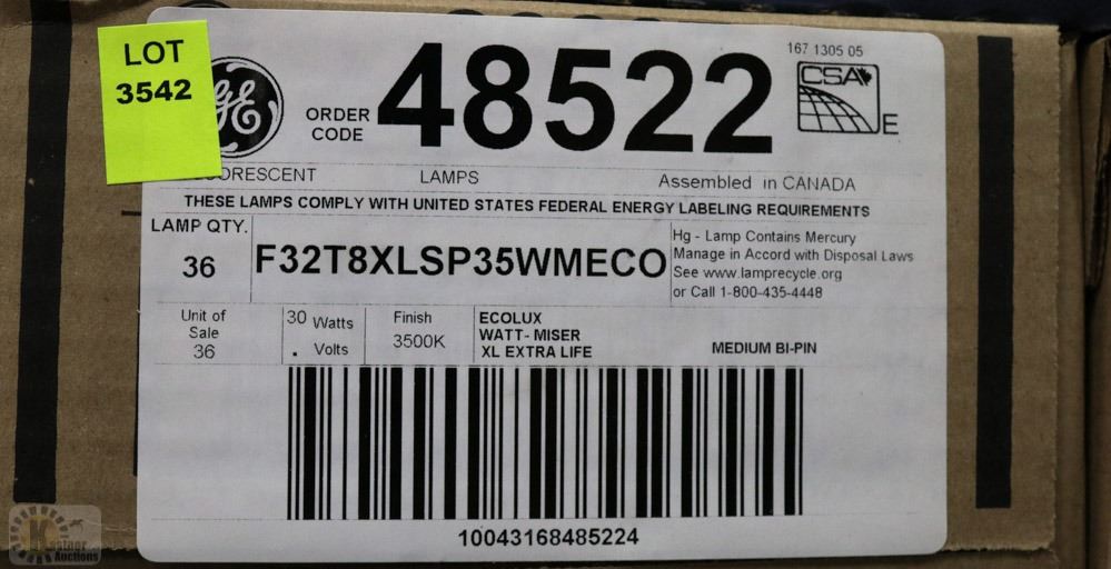 CASE OF 36 NEW 4 FOOT GE FLORESCENT LIGHT BULBS
