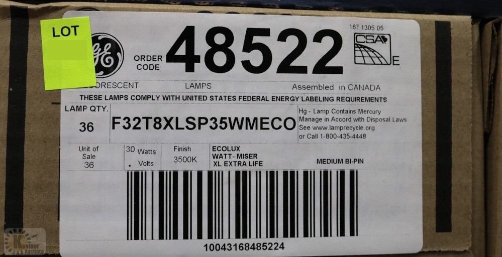 CASE OF 36 NEW 4 FOOT GE FLORESCENT LIGHT BULBS