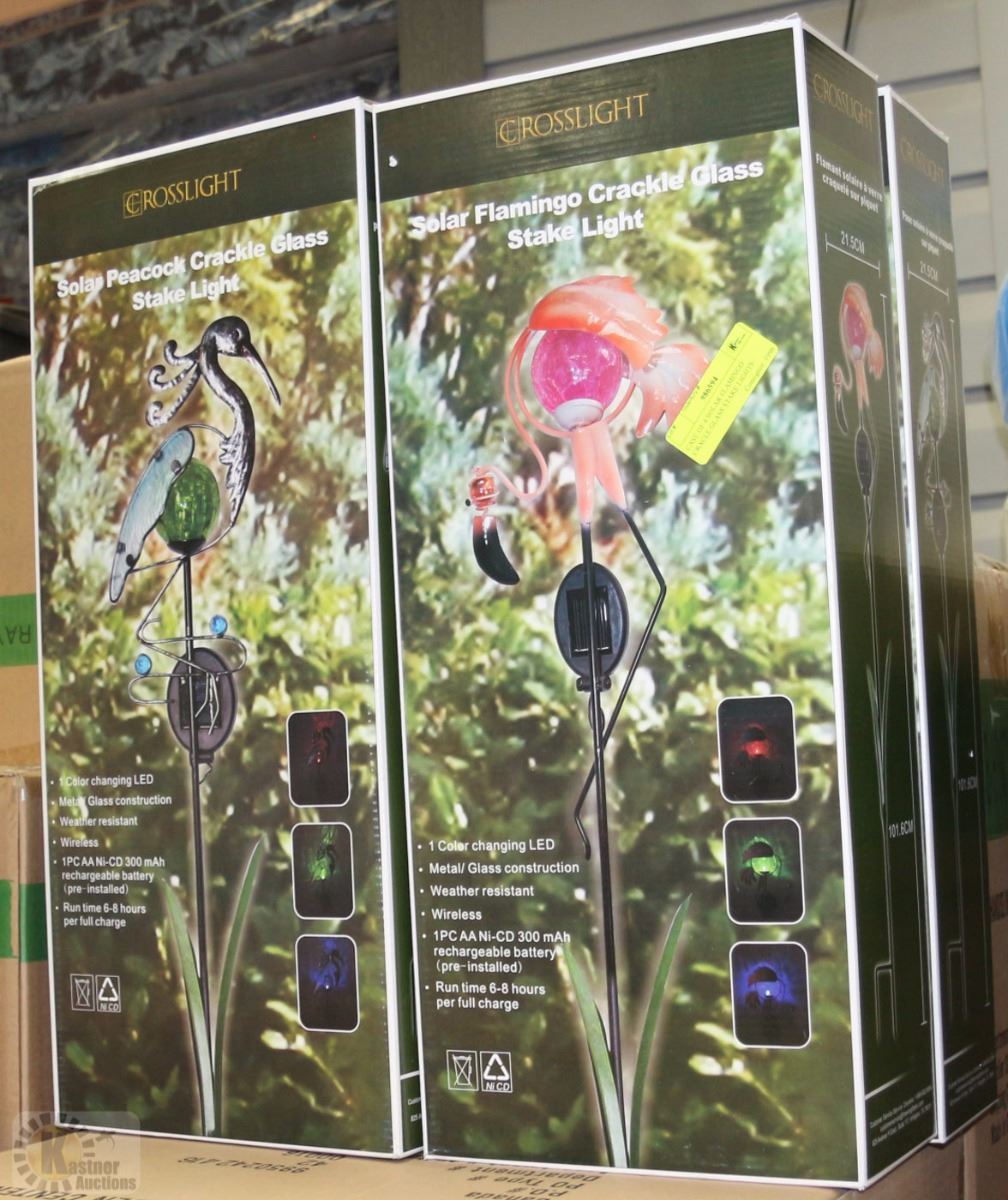CASE OF 4 SOLAR FLAMINGO OR PEACOCK CRACKLE GLASS