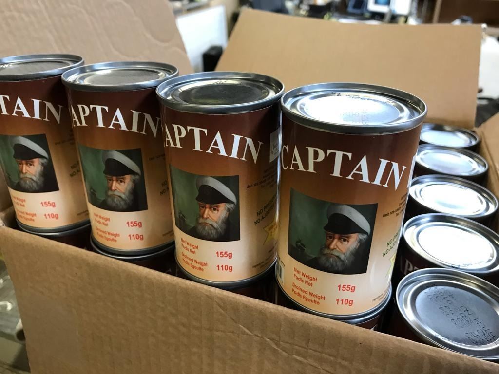 CASE OF 50 CAPTAIN MACKEREL CANNED FISH.