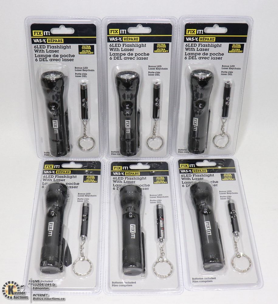 CASE OF 6 FIX IT LED FLASHLIGHTS WITH LASER AND