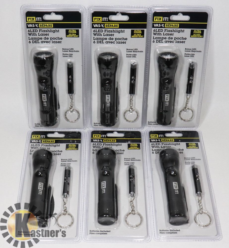 CASE OF 6 FIX IT LED FLASHLIGHTS WITH LASER AND