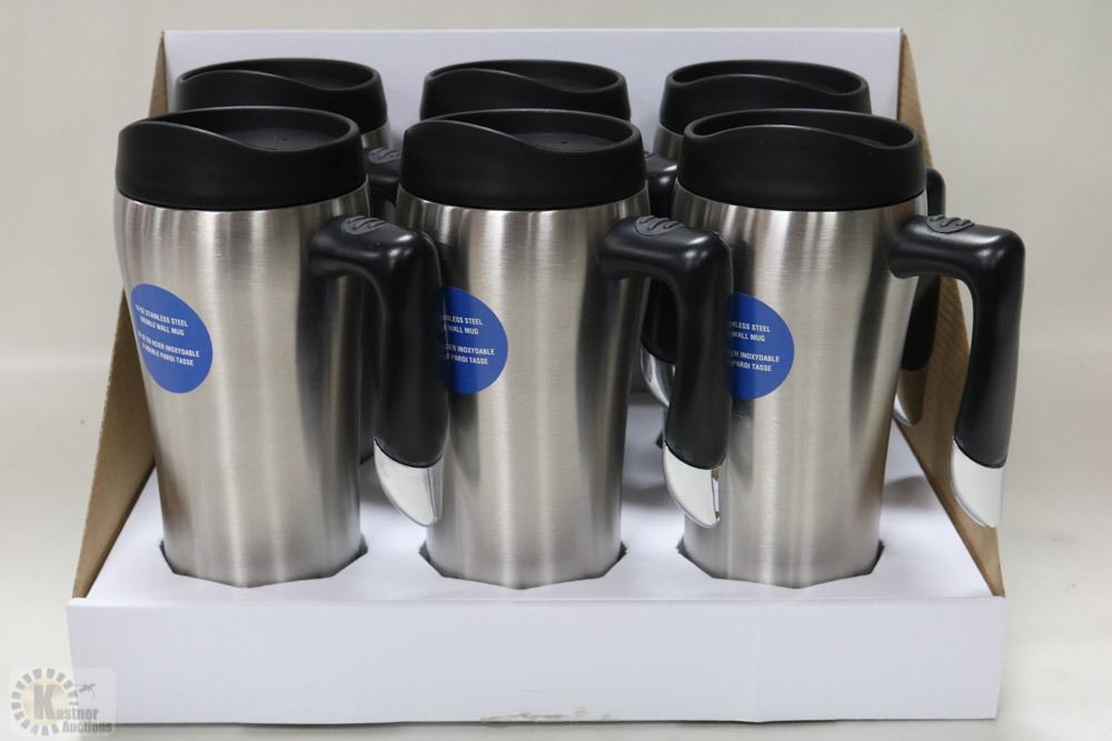 CASE OF 6 STAINLESS STEEL INSULATED TRAVEL MUGS