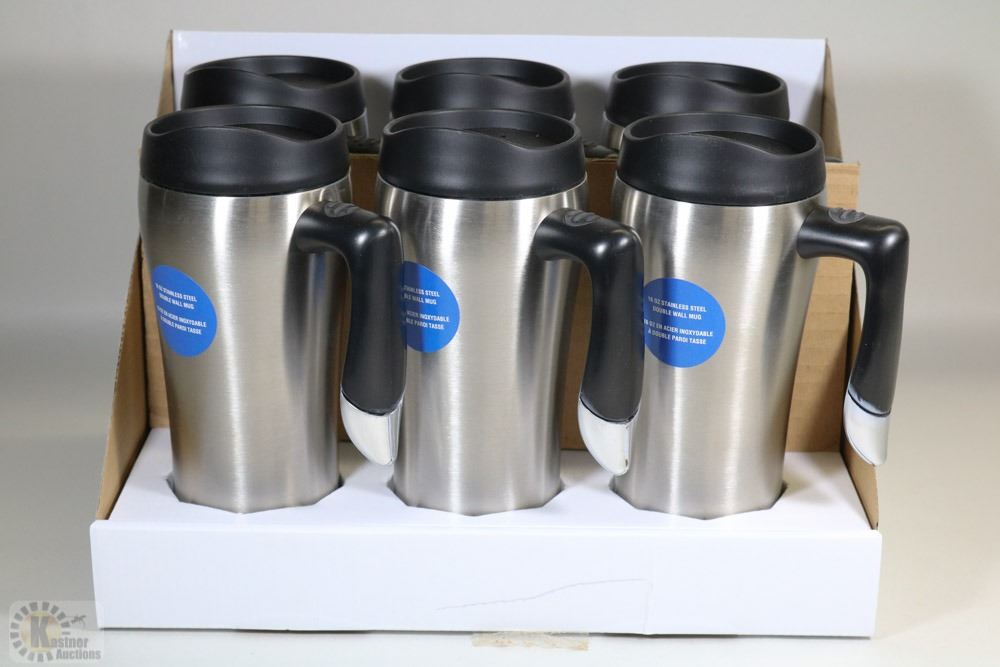 CASE OF 6 STAINLESS STEEL TRAVEL MUGS