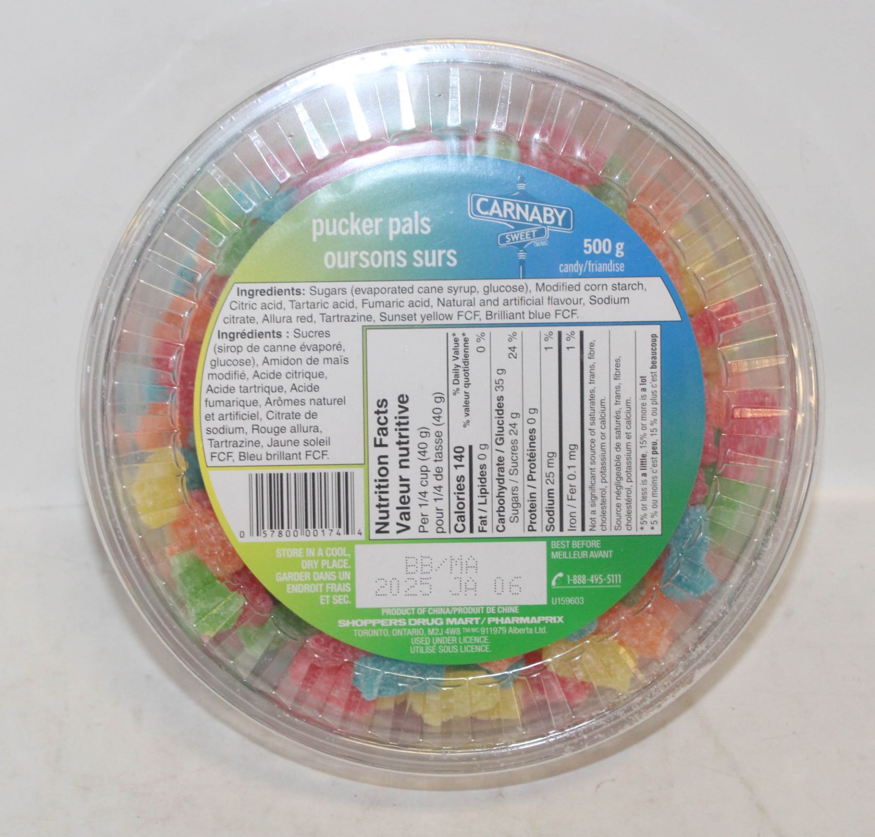 SOUR CANDY 500G TUBS BB JANUARY 2025 **ALL ITEMS MUST BE REMOVED BY 5PM SATURDAY, JULY 12TH 2025. ALL REMAINING ITEMS WILL BE SUBJECT TO A $6.00 PER DAY STORAGE CHARGE. ANY ITEMS REMAINING AFTER MONDAY, JULY 28TH 2025 WILL BE CONSIDERED FORFEITED. NO REFUNDS WILL BE ISSUED FOR FORFEITED ITEMS. TO SCHEDULE A PICK UP APPOINTMENT CLICK HERE