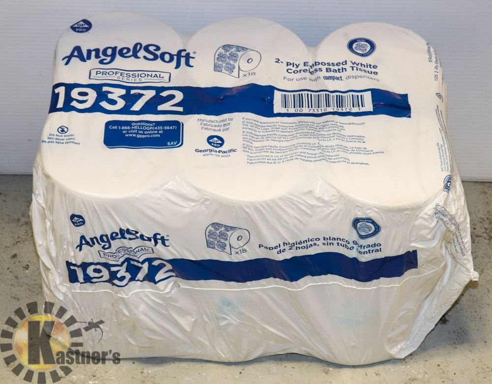EMBOSSED WHITE CORELESS BATH TISSUE. FOR USE WITH COMPACT DISPENSERS. 19372