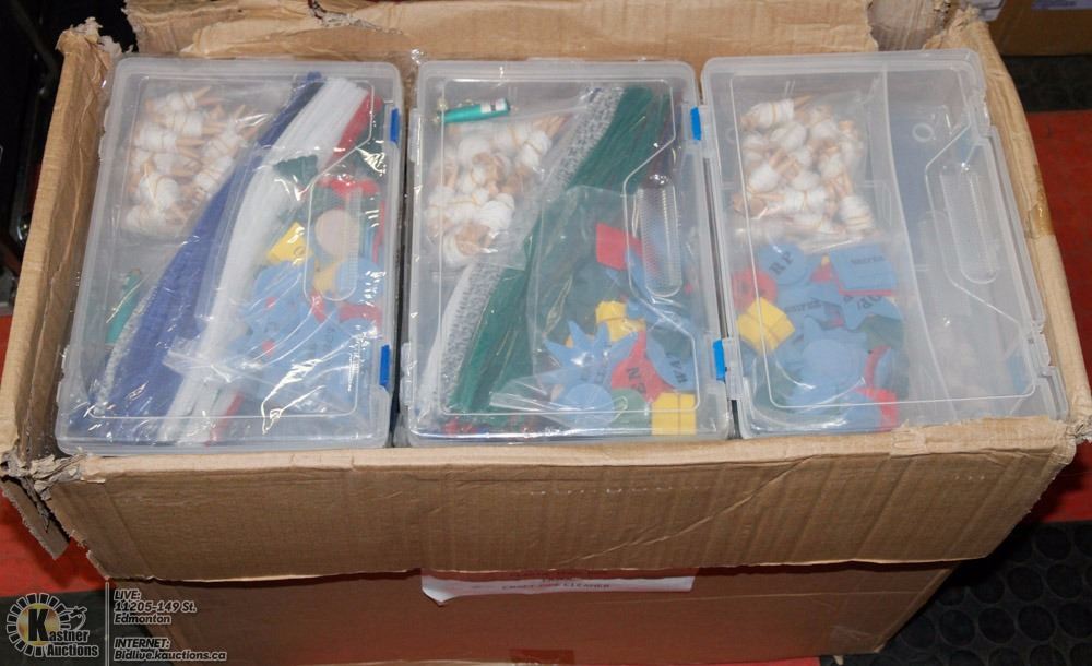 GAME PIECES, PLASTIC CASES WITH DIVIDERS, PIPE CLEANERS ETC