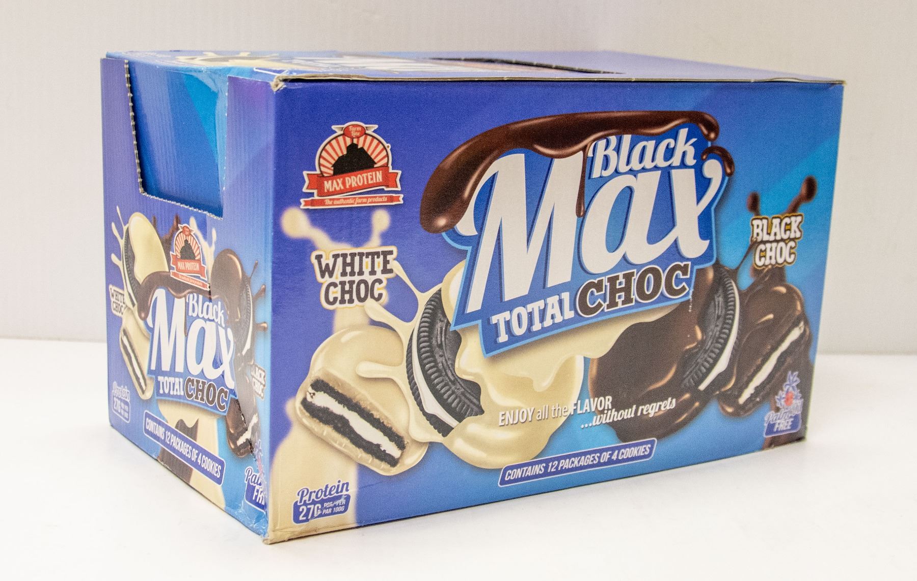 BLACK CHOCOLATE. 4 COOKIES PER PACKAGE. 100GX12. 27G OF PROTEIN PER PACK. BEST BEFORE 19/06/22