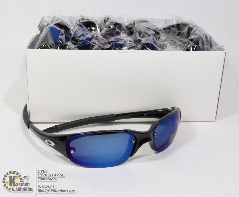 CASE OF BLACK OAKLEY STYLE SUNGLASSES