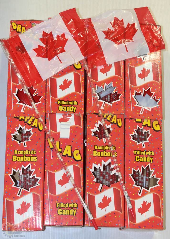 CASE OF CANADIAN FLAGS FILLED WITH CANDY