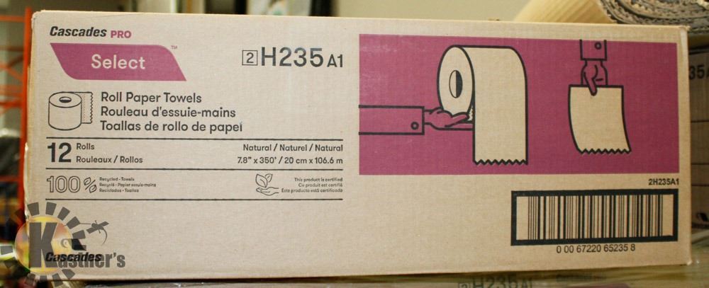 CASE OF CASCADES PAPER TOWEL ROLLS, 12 ROLLS PER