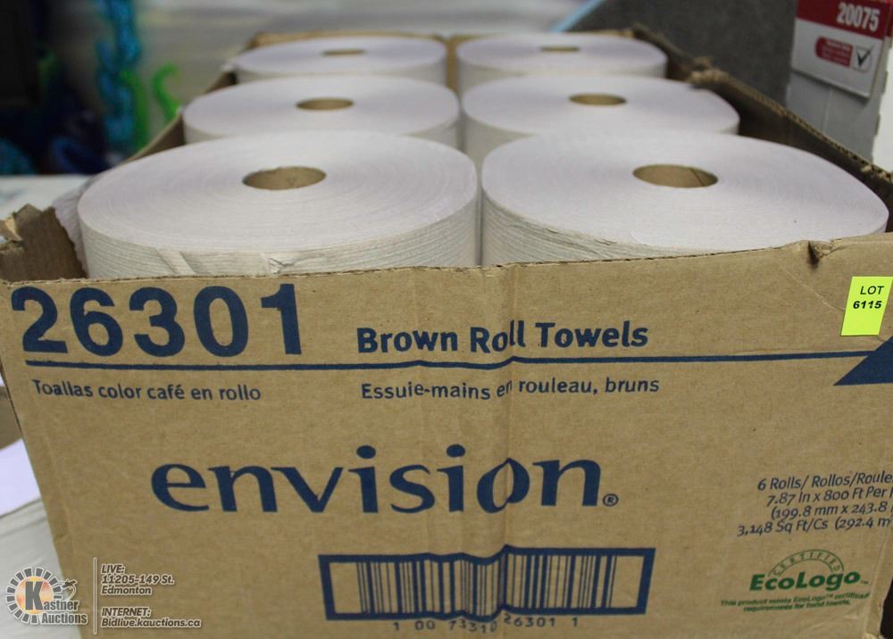 CASE OF ENVISION BROWN ROLL TOWELS