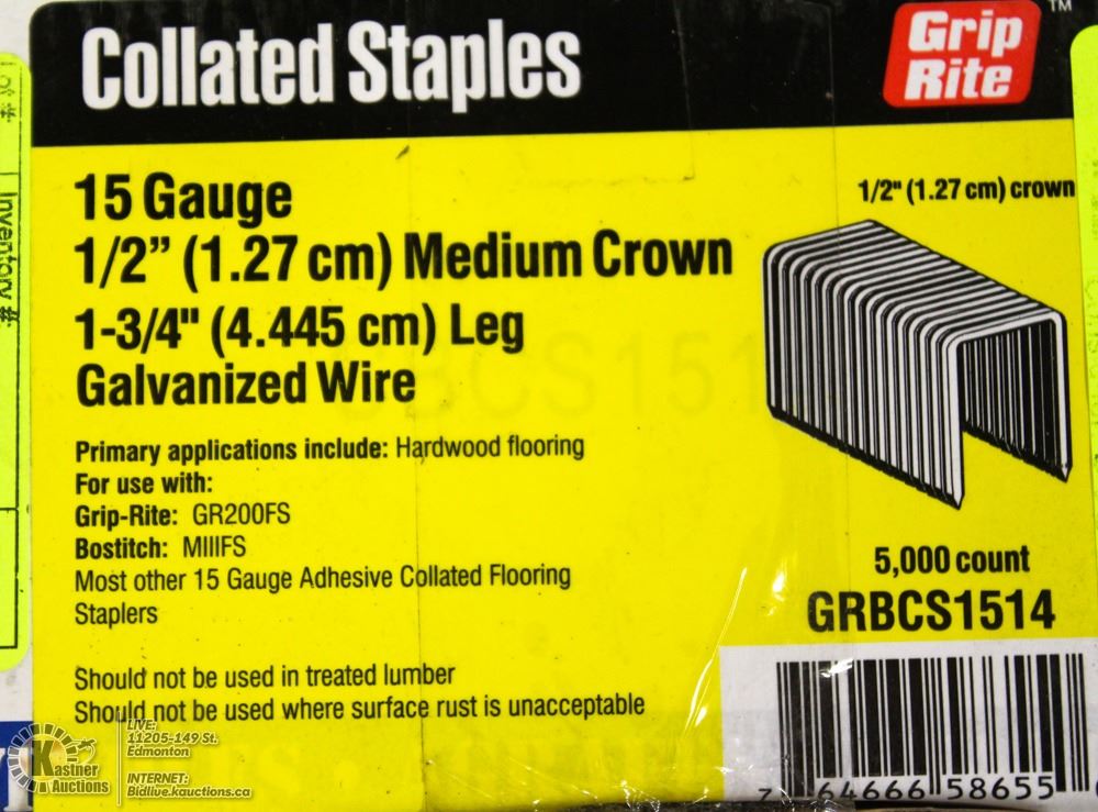 CASE OF GRIP RITE 15 GAUGE COLLATED STAPLES