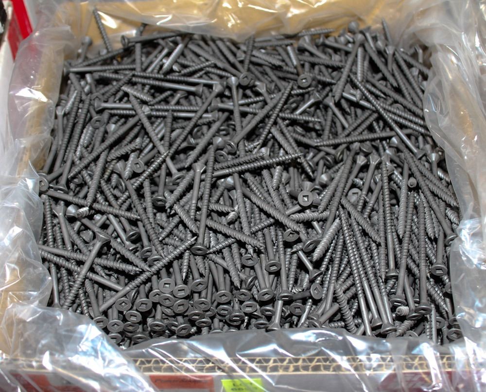 HIGH-LOW THREAD BLACK PHOSPHATE FINISH 1200 PIECES TOTAL #2 SQUARE DRIVE, COUNTER-SINKING HEAD, SHARP POINT SHOULD NOT BE USED IN TREATED LUMBER, OR WHERE SURFACE RUST IS ACCEPTABLEAS THEY COME IN CATALOGUE ORDER