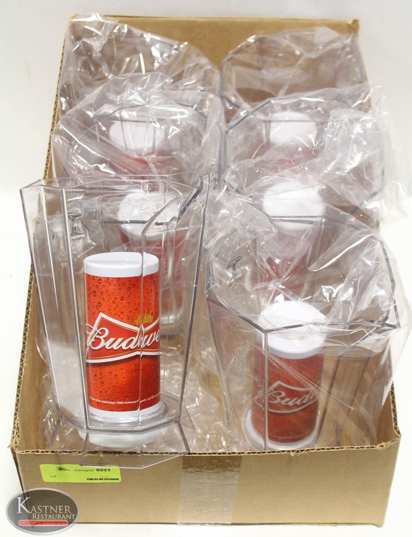 CASE OF NEW POLYCARB POLAR PITCHERS W/ BUDWEISER