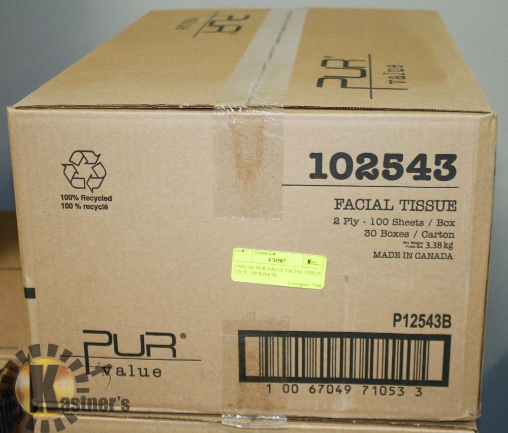 CASE OF PUR VALUE FACIAL TISSUE, 2 PLY, 100 SHEETS