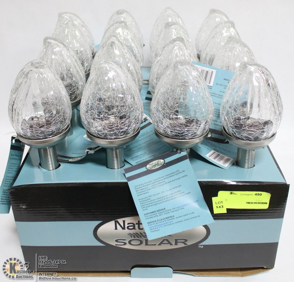 CASE W/ 16 NEW SOLAR CRACKLE GLASS PATHWAY LIGHTS
