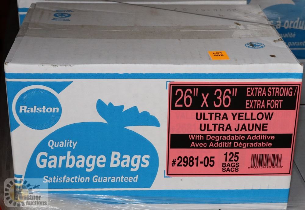 CASE WITH 125- 26"X36" YELLOW GARBAGE BAGS.