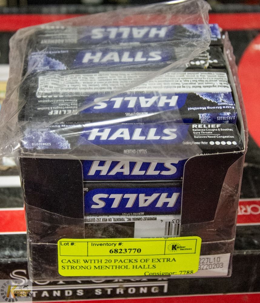 CASE WITH 20 PACKS OF EXTRA STRONG MENTHOL HALLS