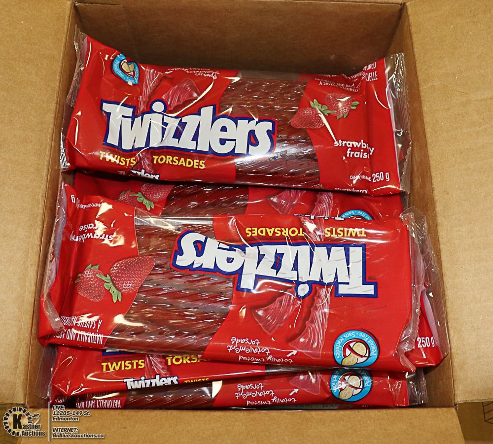 CASE WITH 24 250G BAGS OF TWIZZLER TWISTS
