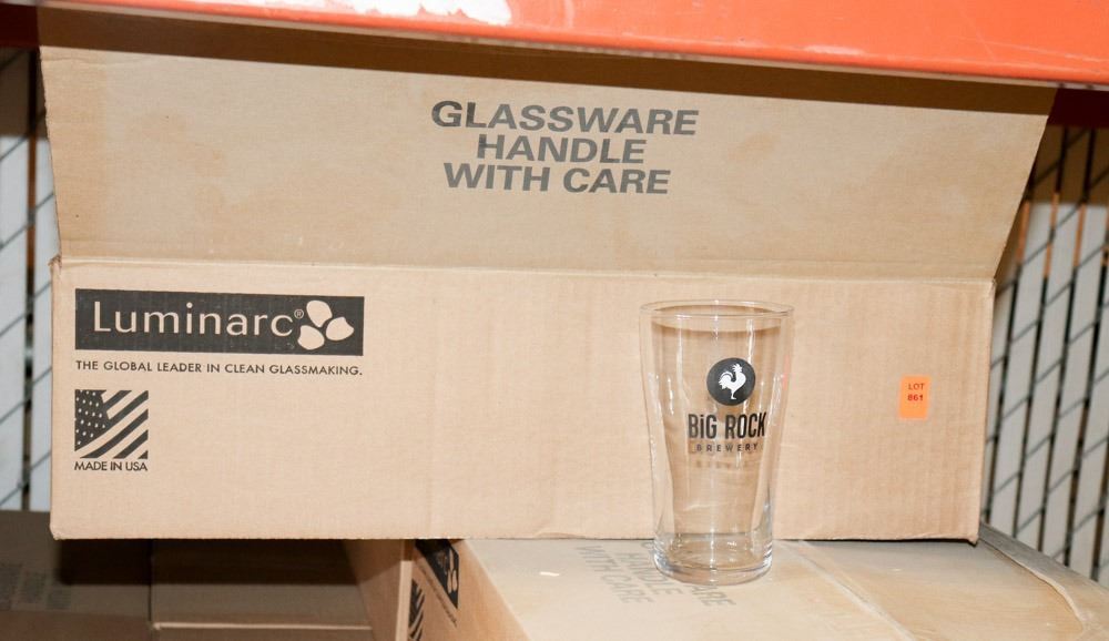 CASE WITH 24 BIG ROCK BREWERY GLASSES.