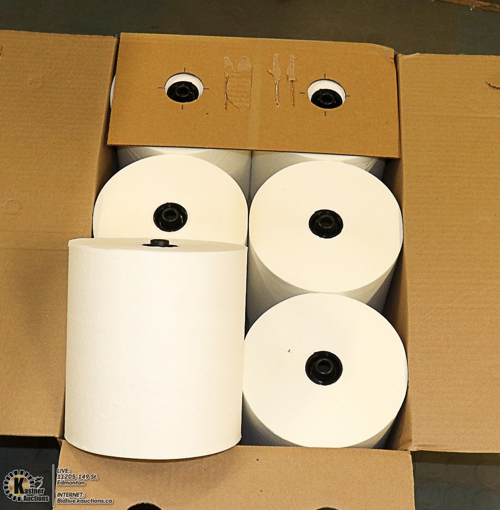 CASE WITH 6 LARGE ROLLS OF 8" 1 PLY ROLL TOWEL
