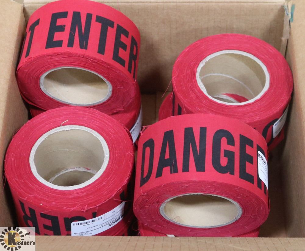 CASE WITH 8 ROLLS OF FABRIC FLAGGING IN RED