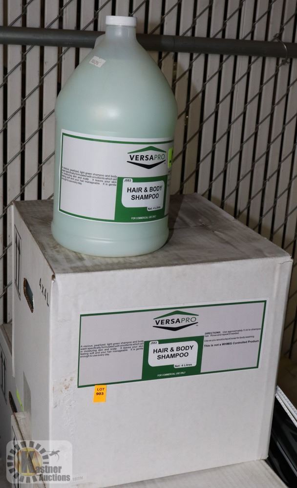 CASE WITH FOUR 4L BOTTLES OF VERSA PRO HAIR AND
