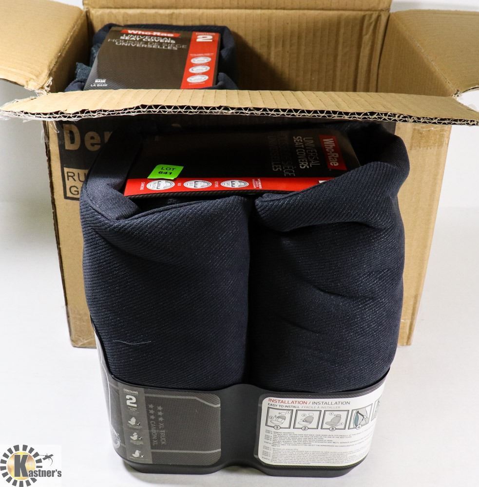 CASE WITH TWO 2PKS OF GREY UNIVERSAL SEAT COVERS