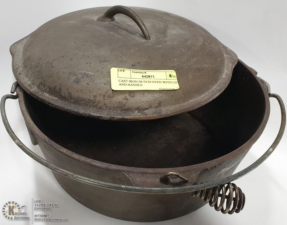 CAST IRON DUTCH OVEN WITH LID AND HANDLE 11 INCHES WIDE 5 INCHES DEEP-HOME